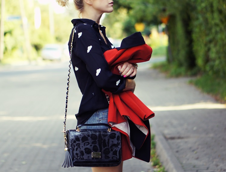 top, marynarka – Sheinside | szorty – lumpeks | torba – Paul`s Boutique | sandały – Buffalo London | zegarek – Apart Elixa