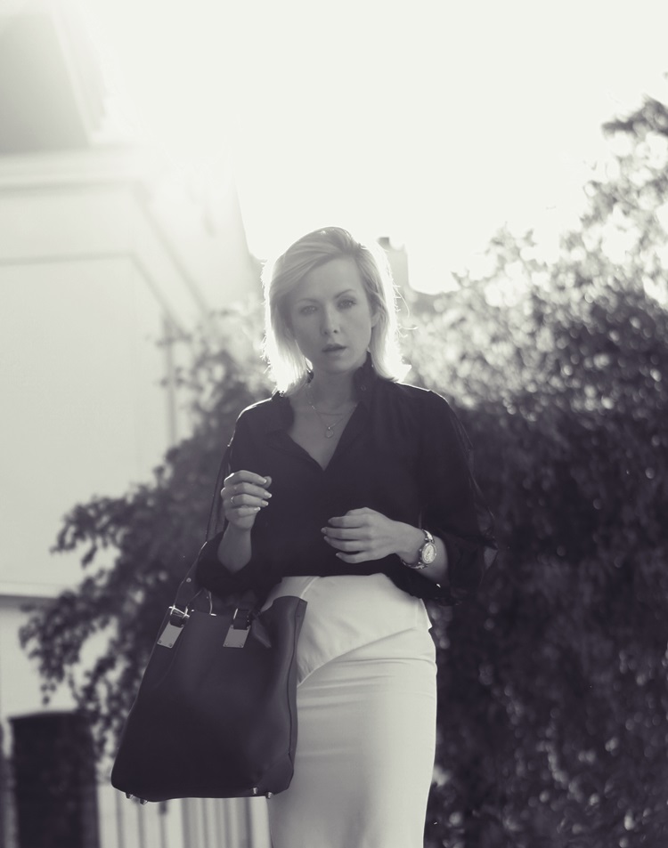 spódnica – beksa | bluzka – lumpex | szpilki – allegro | torba – Even&Odd via Domodi | zegarek – Apart Elixa