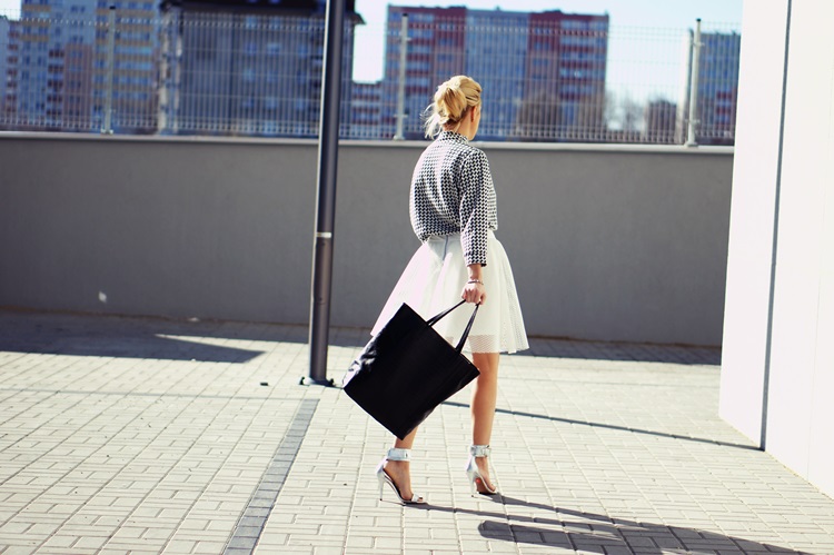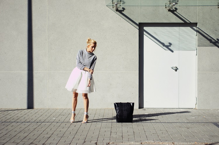 top – Preska | spódnica – Front Row Shop | torba – Gino Rossi | sandały – Mango