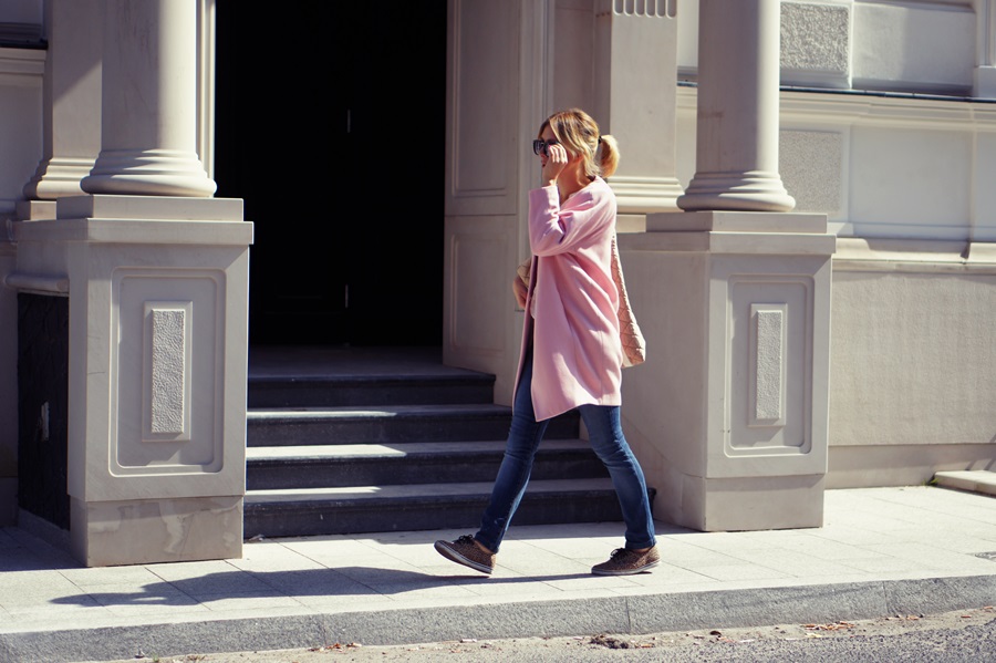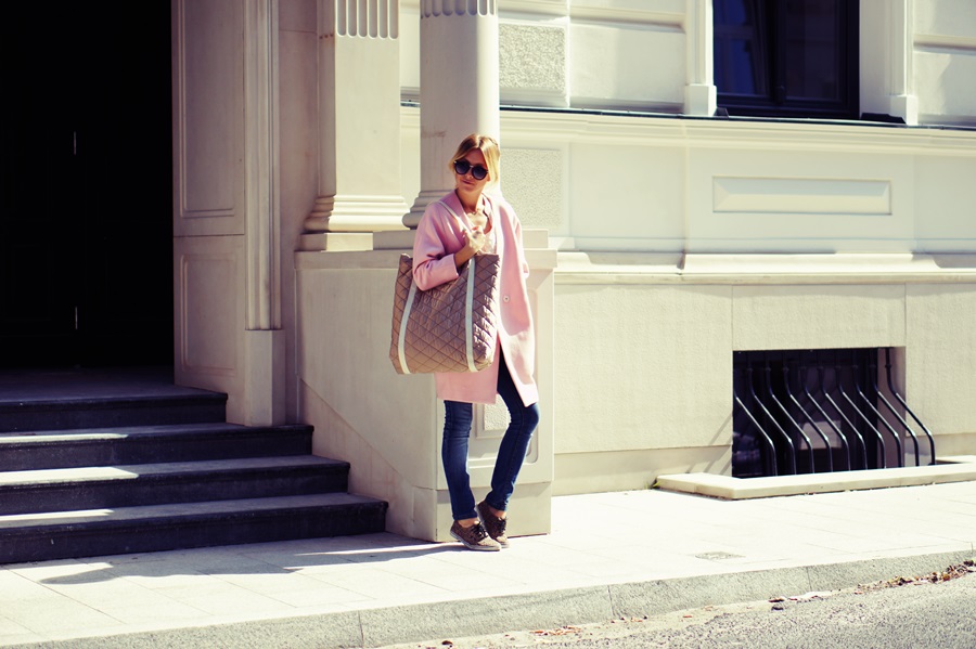 płaszcz – Front Row Shop | trampki – Vans | dżinsy – lumpex | torba – poooh!